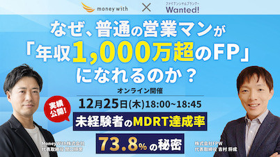 普通の営業職から、感謝されながら「年収1,000万円超」のファイナンシャルプランナー(FP)へ。 その具体的なロードマップを公開する特別なウェビナーをご案内します。